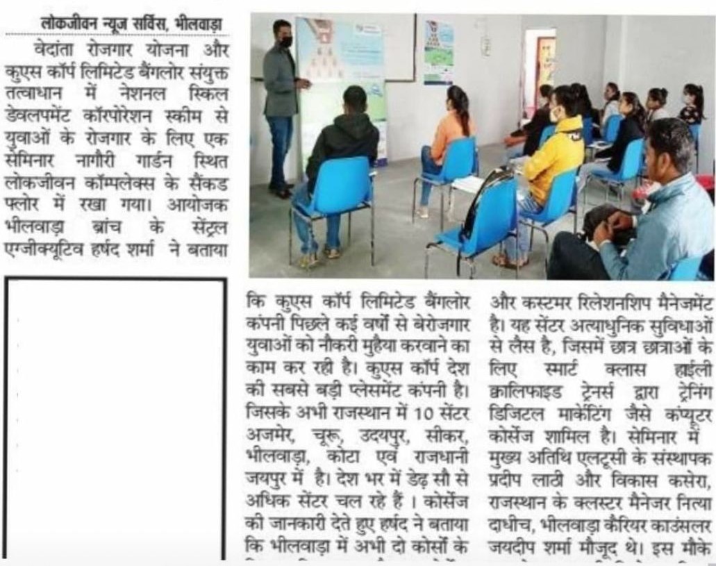 Bhilwara, Rajasthan -Sugyanam Institute of Education, in collaboration with Vedanta Foundation and Quest Corp Excel Learning Solutions, successfully organized a Job Fair aimed at providing employment opportunities to young graduates and students. The event saw active participation, with over 1,000 students attending and exploring career prospects across various industries.